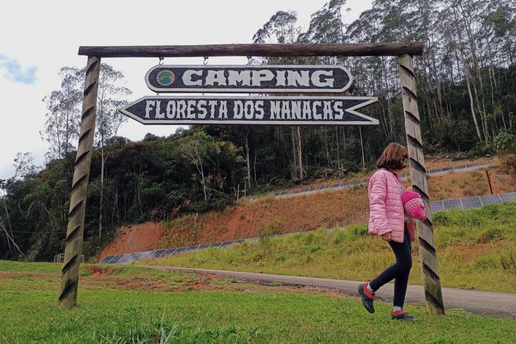 Depois de duas horas de viagem, chegamos ao Camping Floresta dos Manacás no início da tarde. Nossa filha vibrou de alegria ao notar a piscina de ondas, os brinquedos e toboáguas do parque, assim como os animais da fazenda, como gansos, cabras, cavalos, bois, coelhos, ema e avestruz (!), entre outros. O camping estava vazio, exceto pela simpática Giovana, funcionária que cuida do atendimento e da limpeza do local.